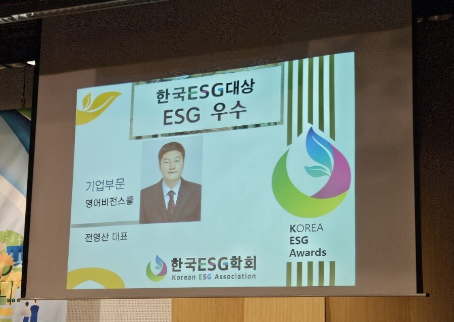 지난 12월 10일, 영어비전스쿨이 한국ESG협회로부터 사회공헌(Social) 부문 ‘우수상’을 수상했어요.